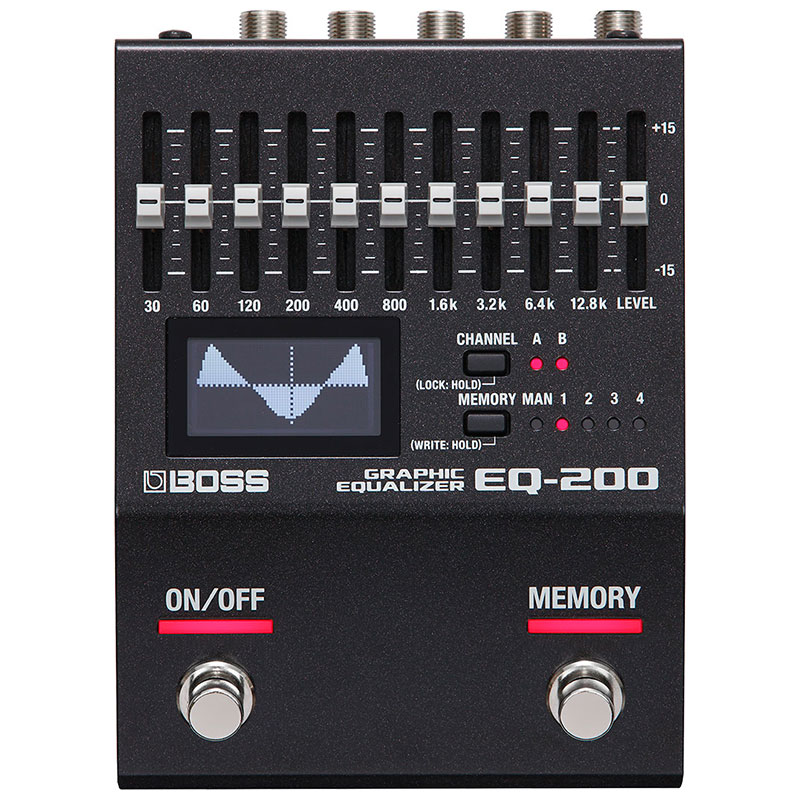 EQ-200 Graphic Equalizerは極めて柔軟性の高いギター/ベース用イコライザーです。ワイドレンジの10バンド・イコライザーを2基搭載。視認性の高い内蔵LCDディスプレイにより、イコライジングの状況を瞬時に確認できます。