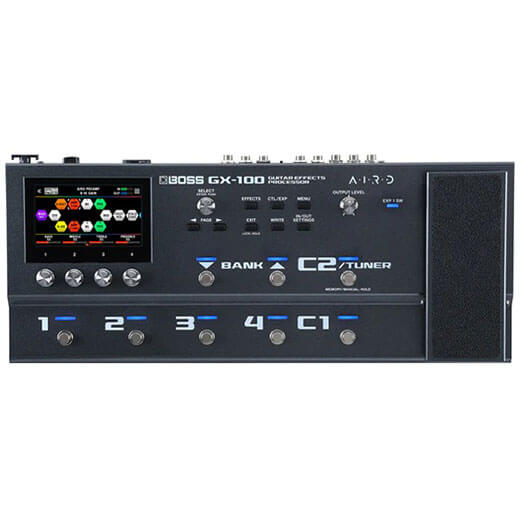 BOSS GX-100 は高品位なサウンドとスムーズな操作感をバランスよく統合したスマートなマルチ・エフェクターです。フラッグシップGT-1000 から譲り受けたAIRD プリアンプによりチューブ・アンプのサウンドと弾き心地を提供。タッチ操作に対応した視認性の高いカラー・ディスプレイと4 つのノブを組み合わせることで、サウンド・メイキングも合理的かつスムーズに行えます。