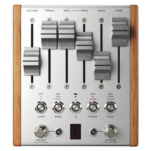モーターフェーダーで設定を視覚的にリコールする、魔法のようなオーバードライブ/ファズボックス。