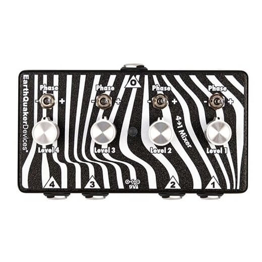 Four to One Mixerは、4つの入力を1つの出力にまとめるユーティリティ・ミキサー。各チャンネルに独立レベルと位相切替スイッチを装備し、並列エフェクトのブレンドや複数ソースのサミングをシンプルに実現します。