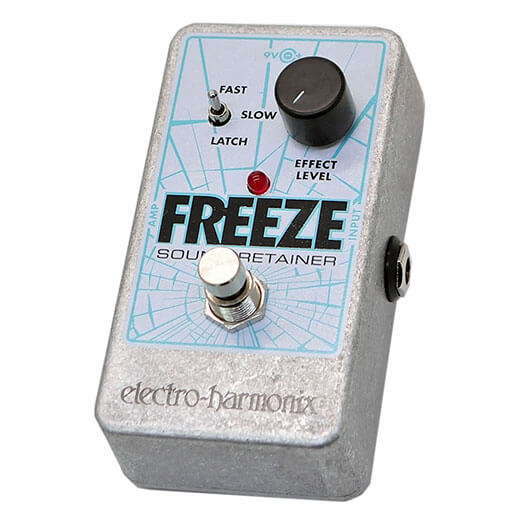 ELECTRO-HARMONIX「Freeze Sound Retainer」は、単音やコードに無限のサステインを与えます。スイッチを踏んでいる間だけサウンドを鳴らしたままにして、さらにその上にプレイを重ねられるので、複数のプレイヤーが弾いているような効果を生み出せます。