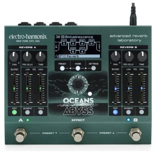 Electro-Harmonix(エレクトロハーモニックス)の「Oceans Abyss」は、先進的なリバーブ・ラボラトリーとして設計された、究極のリバーブ・エフェクターです。