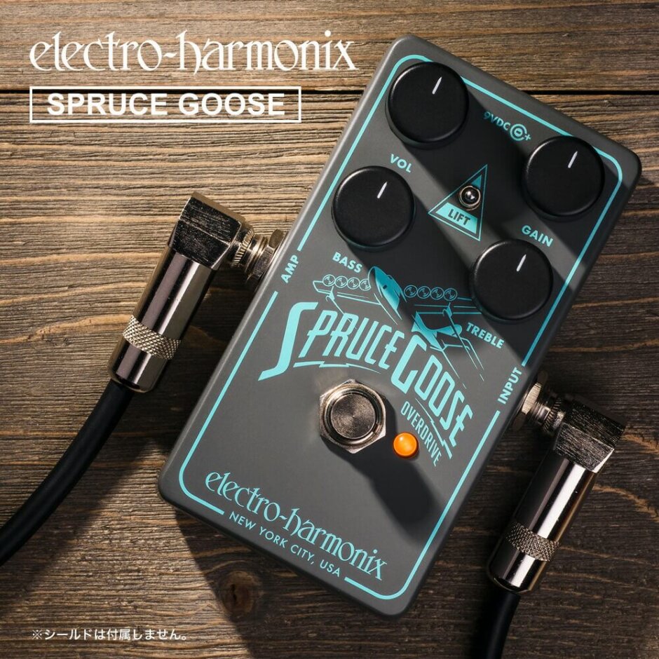 Electro-HarmonixのSpruce Gooseは、クラシックなBluesbreaker®スタイルのオーバードライブを進化させ、クリアでダイナミックなサウンドを実現するペダルです。3段階のインプット・ゲイン設定を可能にするLIFTスイッチを搭載し、肉厚なブーストからスムースなリード・トーンまで、多彩なサウンドメイクが可能です。アクティブBASSノブとTREBLEノブにより、低音域と高音域を自在に調整でき、シングルコイルやハムバッカーなど、さまざまなピックアップに対応します。さらに、ラッチとモーメンタリーの両方の動作に対応したトゥルーバイパス・ソフトフットスイッチを採用し、演奏中の柔軟な操作が可能です。9Vバッテリー(付属)または9V DCアダプター(別売)で駆動し、コンパクトなデザインでありながら、プロフェッショナルなサウンドを提供します。