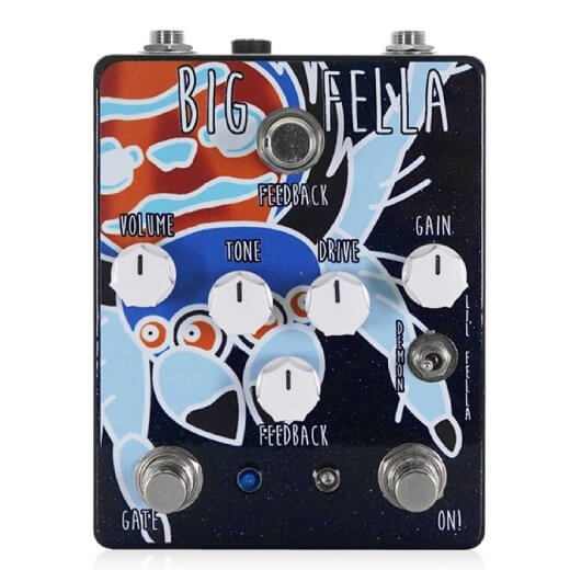 Fuzzrocious Pedals BIG FELLAは、オーバードライブ、ディストーション、ファズまでを1台でカバーし、様々な用途にご使用いただけるLi’l Fellaのデラックスバージョンとなるドライブペダルです。