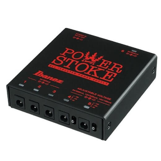 Ibanez(アイバニーズ)「POWER STOKE PWRS6」は、6ポートすべてが完全にアイソレーテッド構造の高機能パワーサプライです。1~3番ポートは9V/500mA出力、6番ポートは9V/300mA出力、さらに4・5番ポートで9V/12V/18Vに切り替え可能という高い柔軟性を備えています。