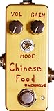 Chinese Food Overdriveは、本格的なトランスペアレント系オーバードライブをミニサイズ筐体に収めたモデル。VOL/GAINとMODE(ゲイン切替)を搭載し、トーンノブはあえて非搭載。クリーンブースト~ローゲインの心地よいクランチに加え、NOS国産クリッピング・ダイオードの追加でProCo RATに近いファジーな歪みまで対応。厳選パーツを用い、1台ずつハンドワイヤリング/ハンドペイントで製作。