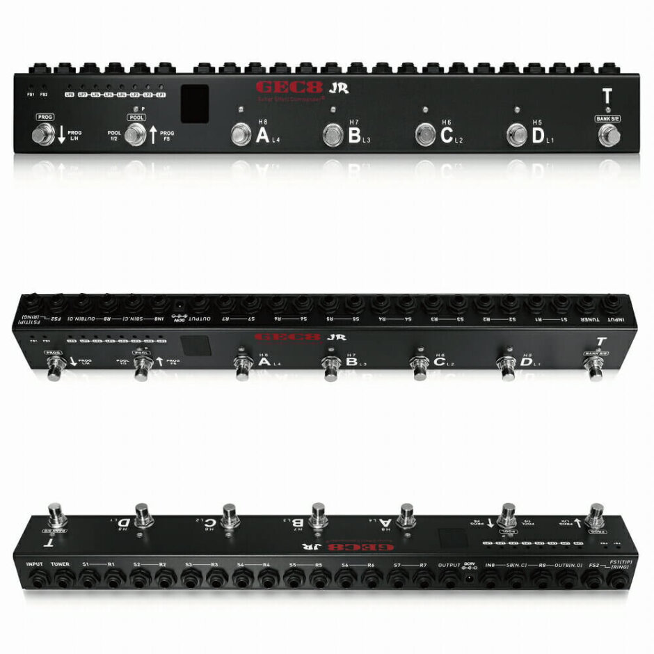 Moen GEC8 JR (2nd Edition)は、最大8つのエフェクトループと2つのリモートスイッチを備えた、多機能かつコンパクトなプログラマブルスイッチャーです。そのスリムなデザイン(480mm x 60mm x 52mm)は、ペダルボードのスペースを有効活用し、複雑なエフェクトチェーンの管理を容易にします。リレートゥルーバイパス設計により、音質の劣化を防ぎ、瞬時のプログラム呼び出しが可能です。さらに、7つのシリーズループと1つのセパレートループ、2つのラッチタイプのリモートスイッチを組み合わせることで、多彩なサウンドセッティングを実現します。チューナーアウトやミュート機能も搭載し、ライブパフォーマンスやスタジオワークでの柔軟な操作性を提供します。