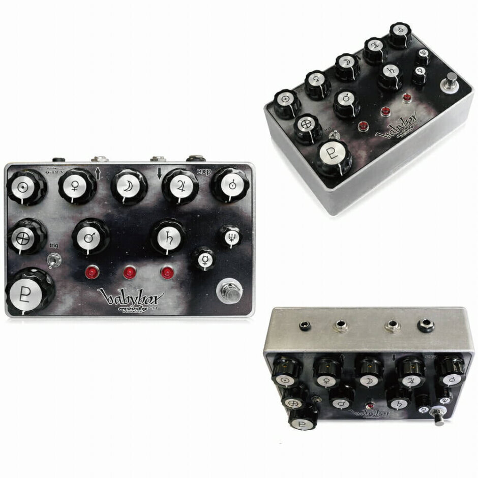Moody SoundsのBaby Box Noise Generatorは、ファズ、ディレイ、ノイズオシレーターの3つの回路を組み合わせたカオスなノイズマシンです。ギターシグナルを破壊し、バックグラウンドに不気味なノイズを流し、新たなビートを追加することが可能です。「Auto」「Constant」「Trig」の3つのモードを搭載し、11個のノブでノイズのピッチ、テンポ、ディレイなど各種パラメータを細かく調整できます。ステレオアウトプットやエクスプレッションペダル端子も備え、多彩なサウンドメイクが可能です。