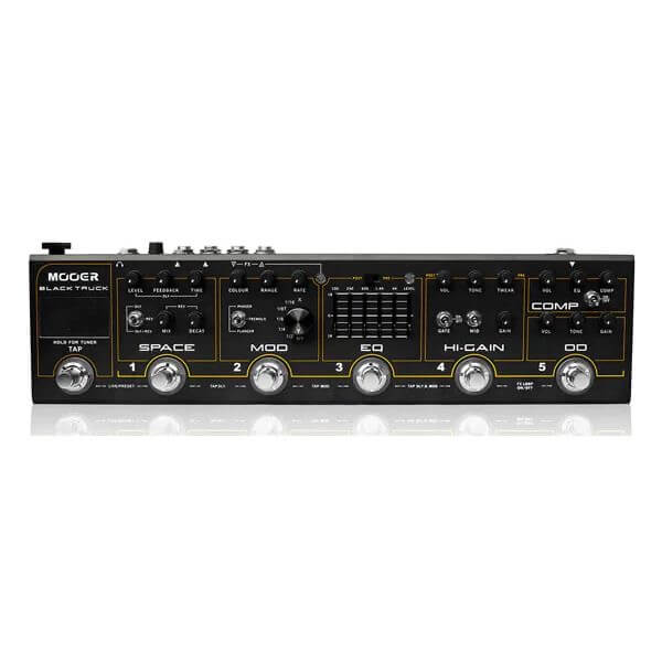 Mooer Black Truckは、6種類のエフェクトと高精度なチューナー、エフェクトループを組み合わせたコンパクトなマルチエフェクトペダルです。ハードロックやヘヴィメタルで使用することを念頭に設計されており、コンプレッサー、オーバードライブ、イコライザー、アナログハイゲインディストーション、マルチモジュレーション、SPACE(デジタルディレイとステレオリバーブ)を搭載しています。これらのエフェクトを組み合わせてプリセットを作ることができ、キャビネットシミュレートアウトも備えています。