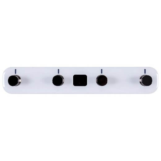 Mooer GTRSギター専用のホワイトカラーワイヤレス・フットスイッチ。2.4GHz接続でプリセット切替やタップテンポ操作、チューナー機能も搭載。USB‑C充電式でケーブル不要、コンパクト&軽量設計(224×40×38mm、220g)。高い操作性と利便性をギタリストに提供します。