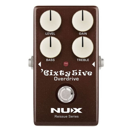 NUX 6ixty5ive Overdriveは、クラシックな60年代ブラックパネルFenderアンプの音色をコンパクトな筐体に凝縮したアナログODペダルです。2バンドEQ(Bass/Treble)、Gain、Level、サチュレーショントリムにより、クリーンからブルース、クラシックロックまで幅広くカバー。