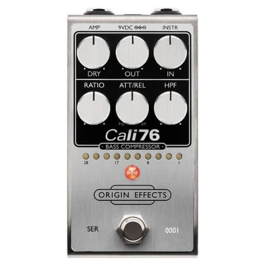 スタジオ定番1176®に着想を得た全アナログFETコンプレッサー。ベースに最適化されたAttack/Release/Ratio、サイドチェインHPF、DRYブレンドを装備。10段LEDゲインリダクション・メーターで効きを可視化。9V入力→内部24V昇圧で高ヘッドルーム、ラインレベルにも対応。上質なステンレス筐体、英国製バッファード・バイパス。透明な整音から強力なリミッティング、ロングサステインまで。