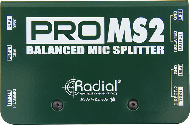 The Radial Pro MS2は、1入力/2スルー+1アイソレート出力でマイク信号を最大3系統に分岐。Eclipse ET‑MS10トランスとグラウンドリフト&‑30 dBパッド搭載により、位相劣化やノイズを抑えた高音質を実現。堅牢な14ゲージ鋼板構造でツアーやスタジオに最適です。