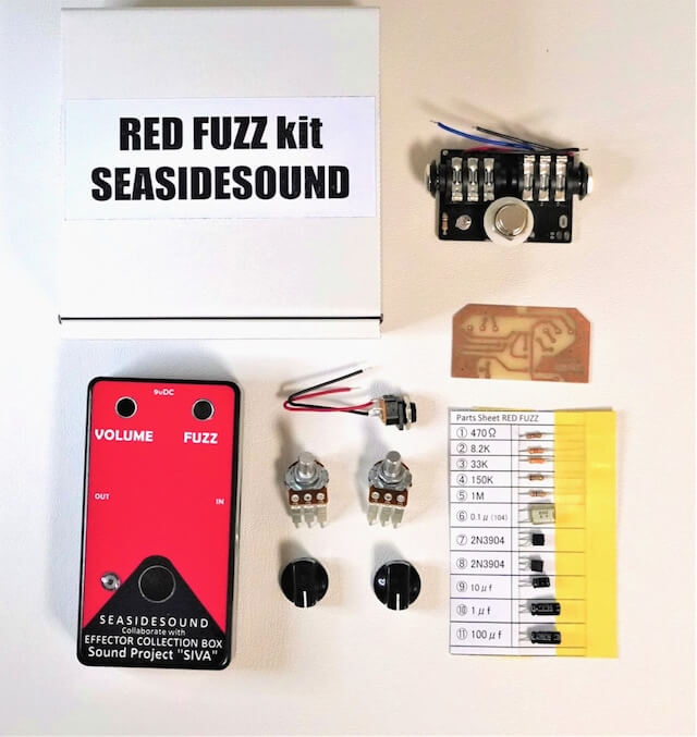 SEA SIDE SOUND RED FUZZ kitは「Sound Project “SIVA”」小澤氏によるエフェクター自作ウェブ講座の作例集「2 TransistorsFuzzの基板レイアウトを書こう」の回路を元にキット化されています。