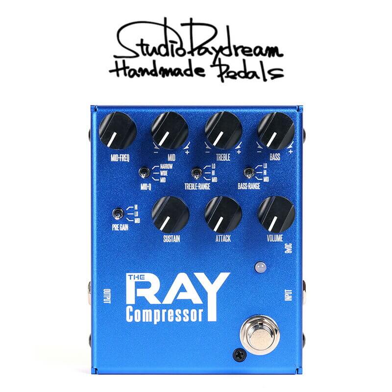 StudioDaydreamのTHE RAY Compressor V3.0は、繊細でナチュラルなコンプレッションを提供する高性能ペダルです。3バンドイコライザーを搭載し、ギターとベースの双方で幅広い音作りが可能。PRE GAINスイッチにより入力レベルを最適化し、SUSTAINノブで長いサステインを実現。アタックタイムや中域周波数を細かく調整できるパラメトリックイコライザーを装備しており、楽器の特性を最大限に引き出します。シェルビングフィルタで高域・低域を自在にコントロールし、トゥルーバイパス設計により原音をそのまま保つ高い音質を実現。ライブやレコーディングでも活躍する多機能コンプレッサーです。