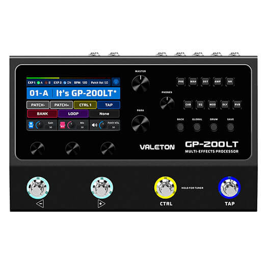 GP-200LTは、オンボード・ペダルを取り除いた、小型のストンプ・スタイルのアンプ&エフェクト・プロセッサーです。 シンプルで直感的なUIを備え、スピーディーなサウンド設定が可能です。そのサイズと多彩なI/Oは、レコーディングのデスクトップユース、ペダルボード内で他のペダルとの組み合わるライブユースでも活躍します。