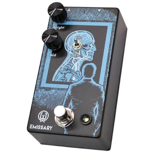 「bright」「mid」2つの独立したブースト回路が入ったパラレルブースター。 「bright」「mid」2つの回路を個別に使用することもミックスすることもできる。