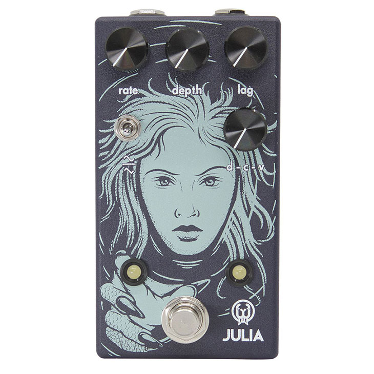 深いラベンダー・カラーのエンクロージャーとサーフグリーンのインク、JULIAをイメージしたイラストが、神秘的で美しいアナログ・コーラス・サウンドに色彩を与えています。