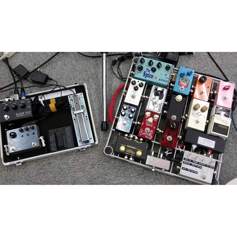 国産、アナログ、(チューナーは許してテヘッ)、別々のメーカーという縛りを自分に課し集めあげたエフェクターボードです!これとアンプに積んだテープエコー×2ロータリーシミュレーター、トレモロをかけて浮遊感あるドリーミーなサウンドにしてます!