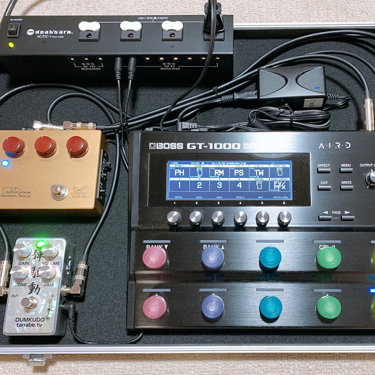 センド&リターンに歪みコンパクトエフェクターを2つ使用していて、弾駆動は太くて甘い音、CENTAUR系オーバードライブのKCM-ODでブーストさせると音がハッキリ前に出て最高です。