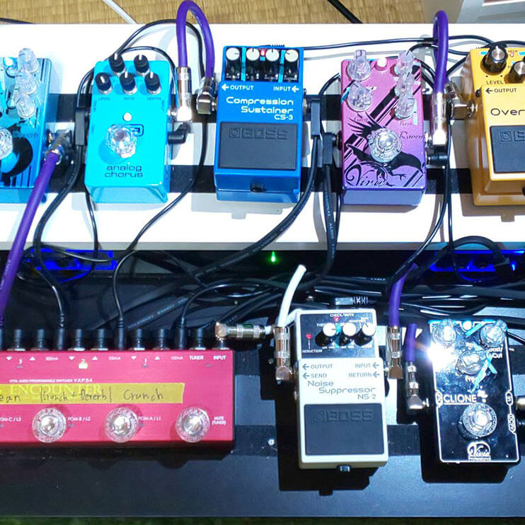 ギター→Vivie CLIONEで味付け→BOSS NS-2でノイズ除去→スイッチャー