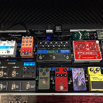 すべて直列なのがこだわりです。先頭にバッファを組むか悩みましたが、テレキャスターメインなこともありあまり高域不足を感じないため結果として組みませんでした。左上のMOODとSpecularTempusは空間系自由枠でたまに入れ替えてますが、どちらもかなり気に入ってます。ボード内パッチケーブルは全てカナレGS-4とHKM L111SLで製作しています。GS-4は柔らかいので取り回しが良く最高です。