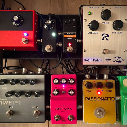 歪みは peace hill fx/TS808 mod、human gear/passionatto、RoShi Pedals/”R”ファZZ