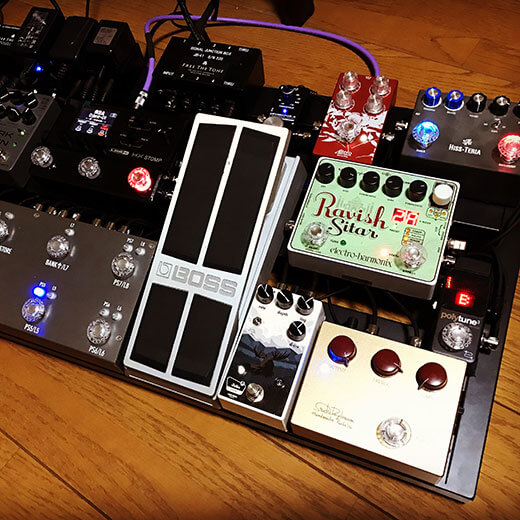 HX Stompが音作りのコアですが、他のペダルとも併用していいとこ取りで音作りしてます。