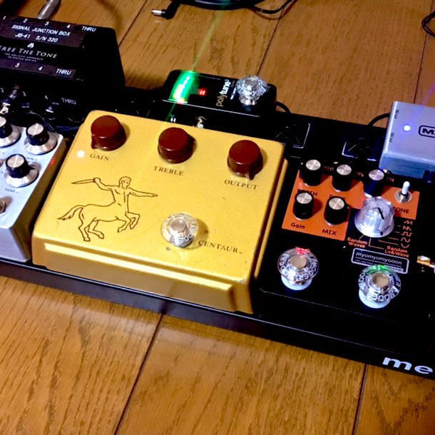 ケンタは常時ON、ダンブル系ドライブのGladioの1Chでピッキングニュアンスでクリーン〜クランチまで出るように、2Chでディストーションくらい歪むようにしてます!