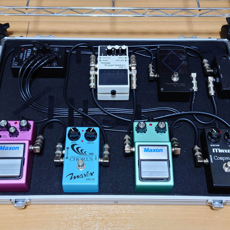 VOXのチューナー、BOSS NS-2から以降はすべてMaxonのペダルです。